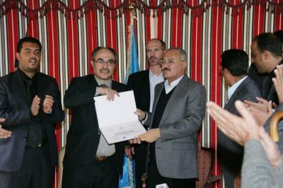 أكد الرئيس اليمني السابق علي عبدالله صالح أنه استلم السلطة في اليمن قبل عدة عقود طوعا، وسلمها طوعا، وفقا للمبادرة الخليجية التي تم التوقيع عليها في الرياض العام الماضي، مؤكدا أن قيادات حزب المؤتمر الشعبي ومناصريه طلبوا منه عدم مغادرة اليمن والبقاء لتقديم المشورة والرأي لهم أثناء مؤتمر الحوار الوطني المرتقب انعقاده قريبا. ... المزيد