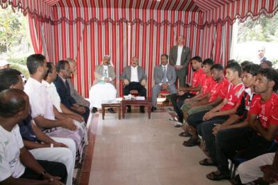 استقبل رئيس المؤتمر الشعبي العام الزعيم علي عبد الله صالح اليوم بصنعاء الفرق الرياضية لأندية سيئون وسلام الغرفة والرابع عشر من أكتوبر.