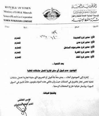 اقرت شركة النفط اليمنية اليوم ( منع) قبول او التصريح لأي سفينة تابعة للتجار من التفريغ في منشئاتها وذلك بعد تزايد انتشار مظاهر السوق السوداء ... المزيد