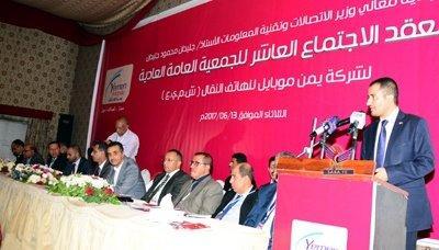 وأشاد وزير الاتصالات وتقنية المعلومات جليدان محمود جليدان، في الاجتماع العاشر للجمعية العامة العادية لمساهمي شركة يمن موبايل اليوم، بما حققته شركة يمن موبايل من حفاظ على مستوى تقديم خدماتها رغم الظروف الصعبة التي تواجهها بلادنا في ظل استمرار العدوان والحصار.